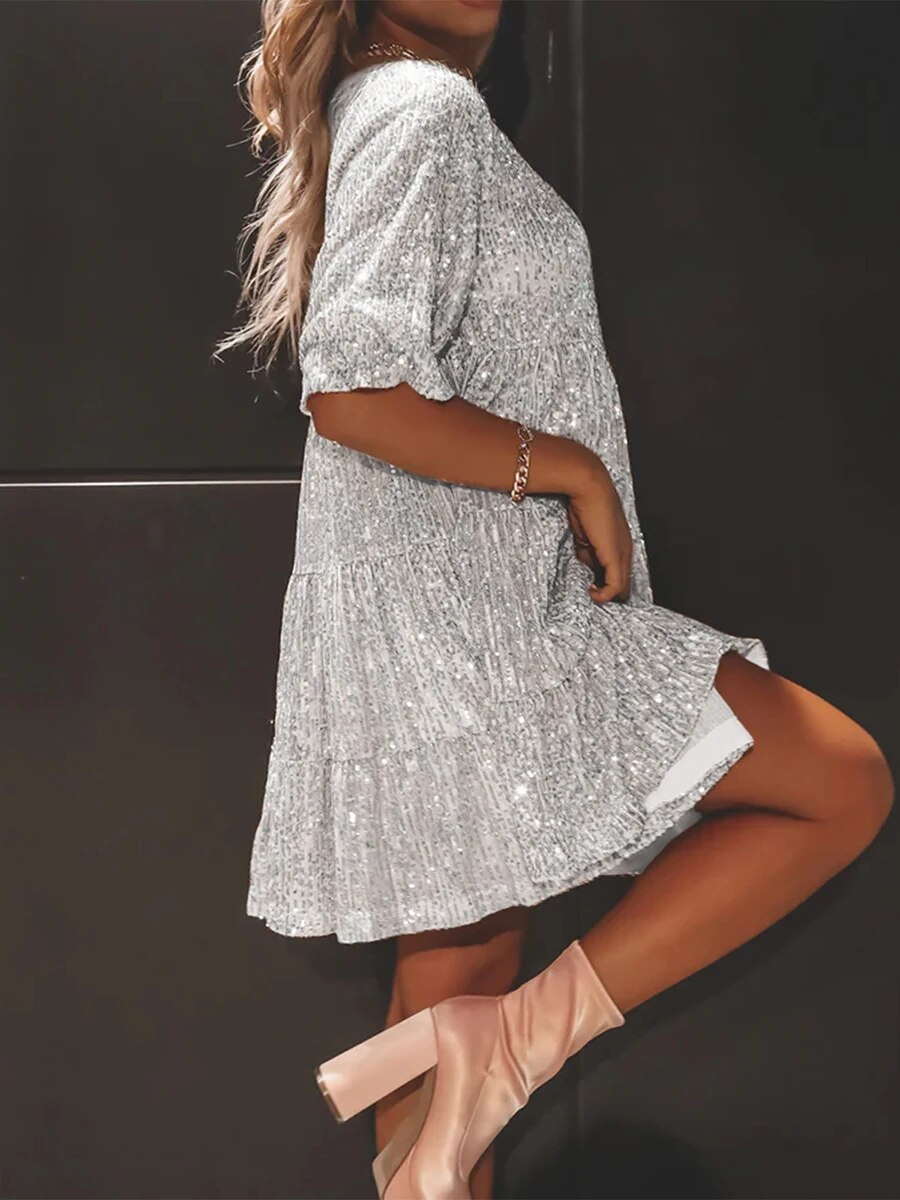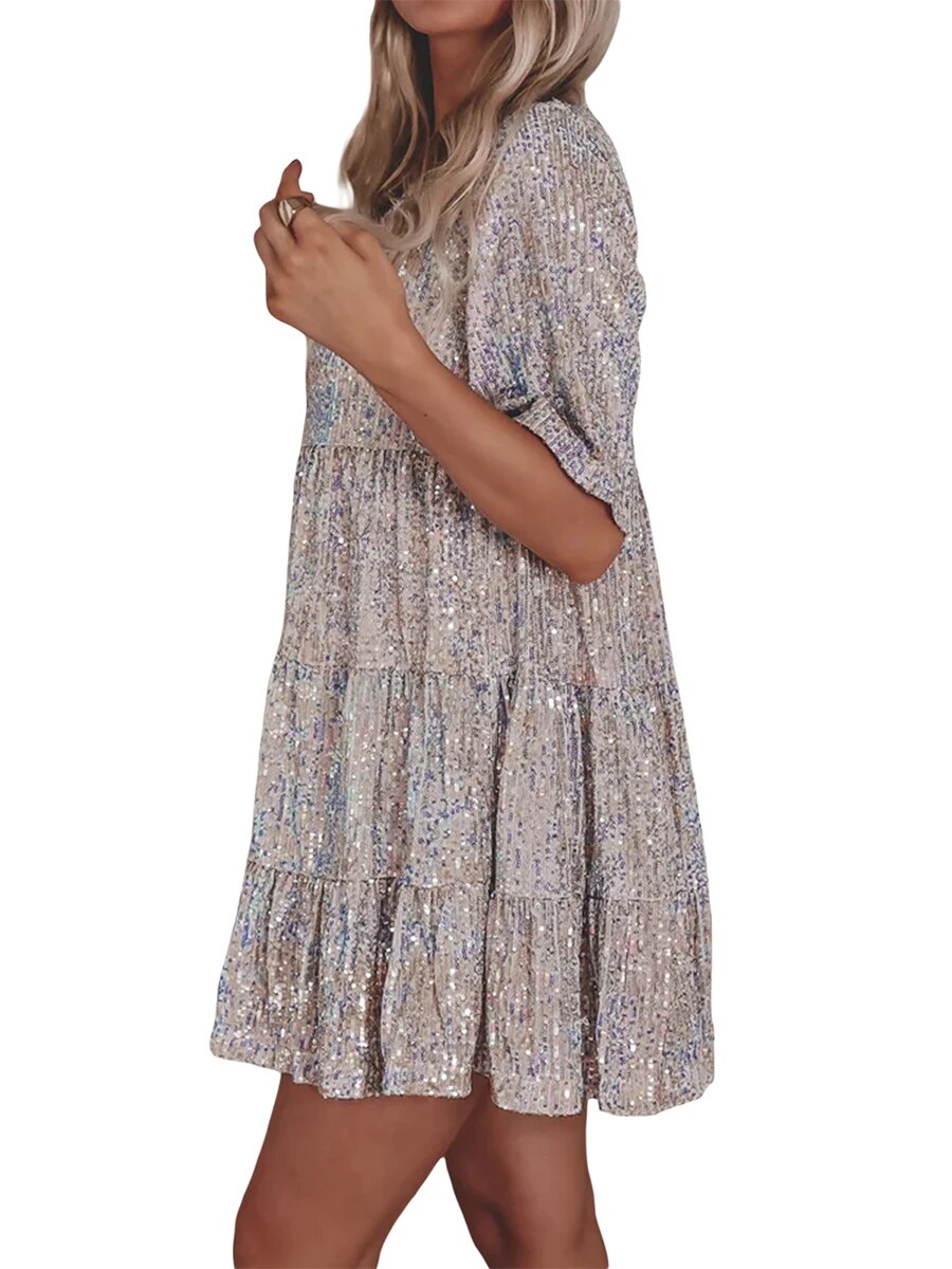 🎁 צעדי אל עולם של אלגנטיות קסומה עם שמלת בובה עם פייטים של Delaney™. אל תתלבשי סתם, האירי את נוכחותך. הזמיני עכשיו! 🎁
